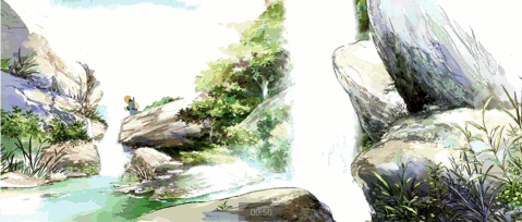 流动的瀑布下清汪汪的小溪。