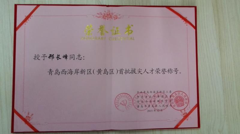 祝贺我公司“邢长峰”同志被评委青岛市黄岛区